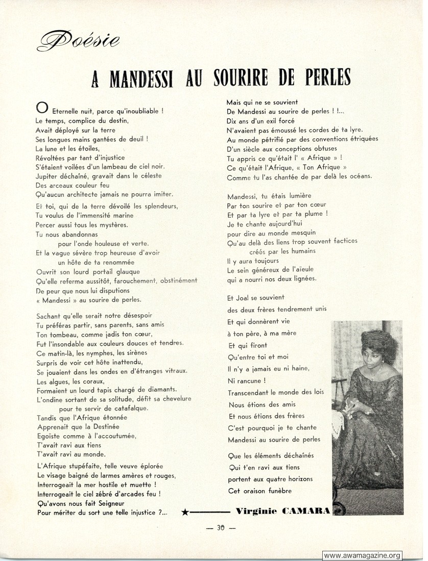La Femme noire et l'art : poésie, A Mandessi au sourire de perl