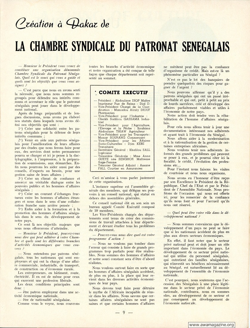Création à Dakar de la Chambre syndicale du patronat sénégal