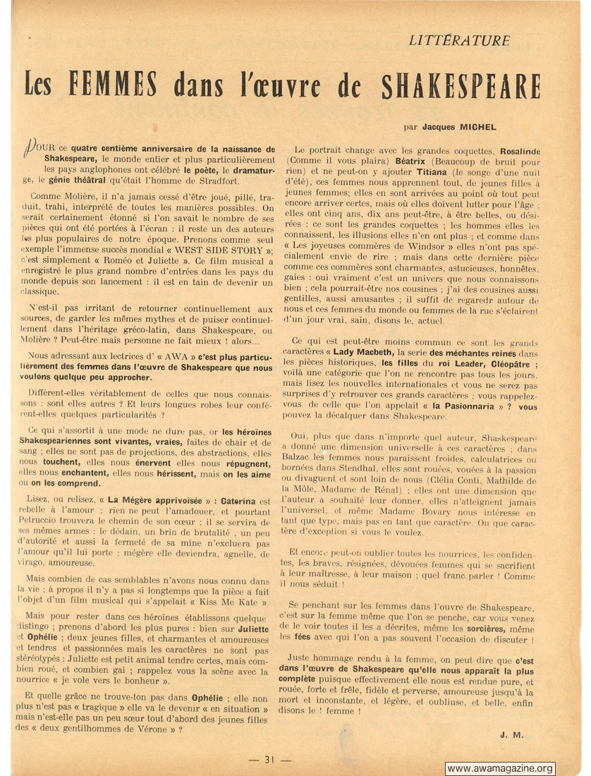 Les Femmes dans l'oeuvre de Shakespeare